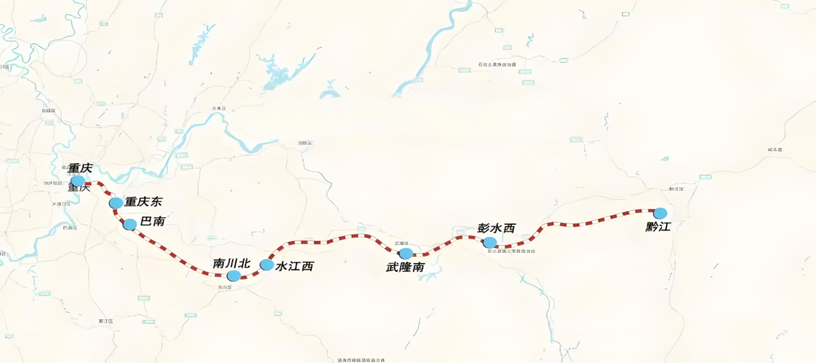ÓåÏøßÌúÓåǶÎн¨ÕýÏßÈ«³¤Ô¼242¹«À£¬£¬£¬£¬£¬£¬£¬Éè¼ÆÊ±ËÙ350¹«À£¬£¬£¬£¬£¬£¬£¬Ïß·´ÓÖØÇìÕ¾Òý³ö£¬£¬£¬£¬£¬£¬£¬£¬Í¾¾ÓåÖС¢Äϰ¶¡¢°ÍÄÏ¡¢ÄÏ´¨¡¢Îä¡¡¢ÅíË®µÈÇøÏØ£¬£¬£¬£¬£¬£¬£¬£¬ÖÕÖÁÇ½Çø£¬£¬£¬£¬£¬£¬£¬£¬¹²ÉèÖØÇì¶«¡¢°ÍÄÏ¡¢ÄÏ´¨±±¡¢Ë®½Î÷¡¢Îä¡ÄÏ¡¢ÅíË®Î÷¡¢Ç½7×ù³µÕ¾£¬£¬£¬£¬£¬£¬£¬£¬ÆäÖÐǽվΪ¸Ä½¨³µÕ¾£¬£¬£¬£¬£¬£¬£¬£¬ÆäÓà¾ùΪн¨³µÕ¾¡£¡£¡£¡£¡£